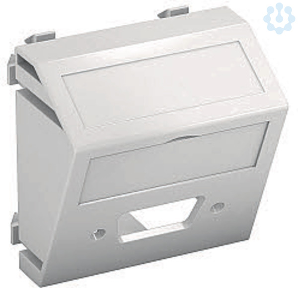 Multimediaträger für einen VGA / D-Sub9 Steckverbinder, Kabelauslass schräg, mit Beschriftungsfeld, ohne Steckverbinder. Trägerplatte mit Rastbefestigung, geeignet für den waagerechten und senkrechten Einbau in die Systemumgebung.