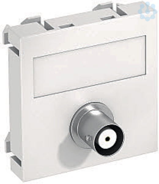 Multimediaträger mit einer BNC Anschlussbuchse, Kabelauslass gerade, mit Beschriftungsfeld, BNC Kupplung in Ausführung Buchse-Buchse. Trägerplatte mit Rastbefestigung, geeignet für den waagerechten und senkrechten Einbau in die Systemumgebung.