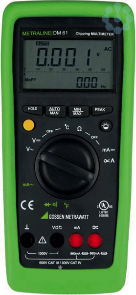 ,Das METRALINE DM61 bietet alle Messfunktionen eines vielseitigen Multimeters der Mittelklasse: Überzeugende Technik mit Spannungs-, Widerstands-, Strom- und Temperaturmessbereichen und vielen weiteren Mess- und Automatikfunktionen wie dem einstellbaren Clip-Faktor für Stromwandler.