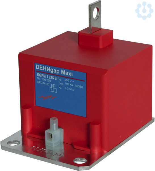 Einpoliger, koordinierter N-PE-Blitzstromableiter DEHNgap Maxi S, Typ 1 nach EN 6143-11. Summenstrom-Ableiter speziell für den Einsatz im TT-System in der 3+1 und 1+1-Schaltung nach DIN VDE 0100-534 zwischen N und PE zur Montage auf industrielle Sammelschienensysteme. Zum Schutz von Niederspannungs-Verbraucheranlagen vor Überspannungen auch bei direkten Blitzeinschlägen. Zum Einsatz im Blitz-Schutzzonen-Konzept an den Schnittstellen 0A ? 1 in der 3+1-Schaltungsvariante.