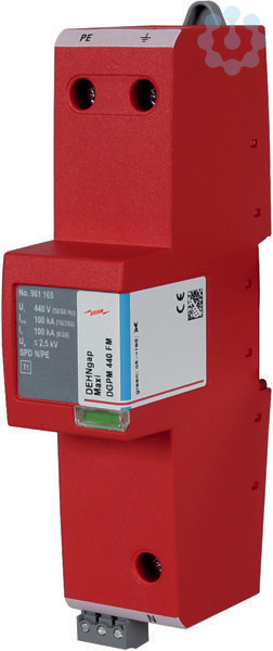 Einpoliger, koordinierter N-PE-Blitzstromableiter DEHNgap Maxi, Typ 1 nach EN 61643-11. Summenstrom-Ableiter speziell für den Einsatz im TT-System in der 3+1 und 1+1-Schaltung nach DIN VDE 0100-534 zwischen N und PE für Uc = 440V. Zum Schutz von Niederspannungs-Verbraucheranlagen vor Überspannungen auch bei direkten Blitzeinschlägen. Zum Einsatz im Blitz-Schutzzonen-Konzept an den Schnittstellen 0A ? 1 in der 3+1-Schaltungsvariante.