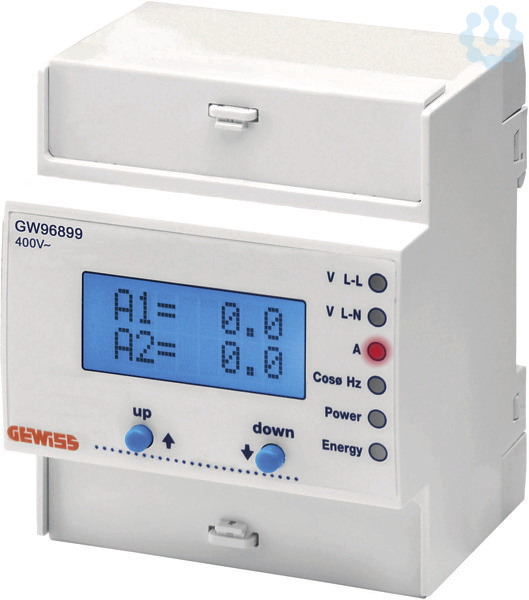 Netzanalysator als Reiheneinbaugeraet nach EN 61010. Anzeige LCD. Zur wahlweisen Anzeige von Spannung (V), Strom (A), Frequenz (Hz), Leistung (W), Blindleistung (VAR), Scheinleistung (VA), Leistungsfaktor (cos phi), Wirkleistungszaehler (kWh), Blindleistungszaehler (kvarh). Die Umschaltung zwischen den einzelnen Werten erfolgt mit Drucktasten an der Frontseite. Die gemessenen Groessen koennen koennen ueber einen RS485- Ausgang (MODBUS RTU) uebertragen werden. Mit einem Schwellenrelais koennen eingestellte Min/Max- Werte ueber einen potentialfreien Schliesser ausgewertet werden. Versorgungsspannung 230 V AC. Direktmessung Strom bis 5 A, sonst mit Stromwandlern. Die Einstellungen koennen mit Passwort geschuetzt werden.