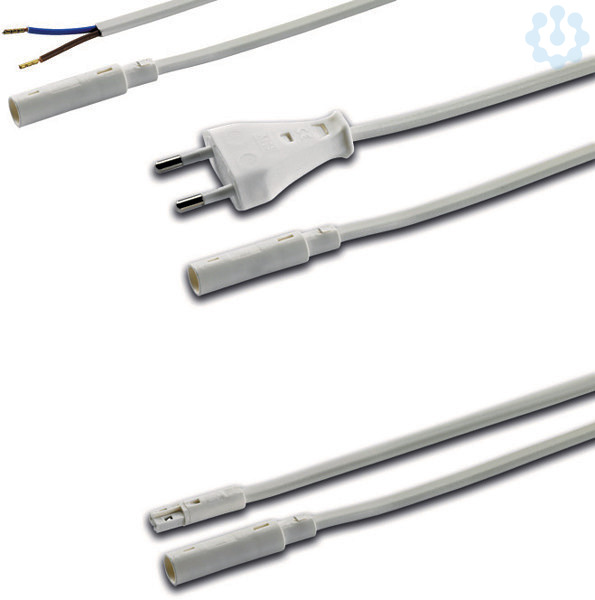 Netzanschlussleitung zum senkrechten Aufrasten an SlimLite CS Leuchten, abgemantelt und mit Aderendhülsen zum einfachen Anschließen an Schraub- oder Steckklemmen