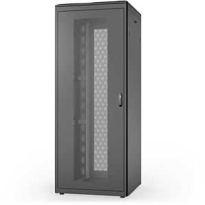 42HE Netzwerkschrank Unique, 2053x800x800 mm perforierte Türen, schwarz, Die Netzwerkschränke der Unique Serie wurden für den benutzerfreundlichen Einbau von aktiven- und passiven Netzwerkkomponenten einhergehend mit einer sauberen Verkabelung entwickelt. Jeder Schrank wird aus bis zu 1,5 mm starkem Stahlblech gefertigt und sorgt auf Grund von spezieller Blechbiegetechnik als robuste Stahlkonstruktion für eine sehr gute Stabilität. Die Farbgebung erfolgt durch Pulverbeschichtung in den Farben Grau (RAL 7035) und Schwarz (RAL 9005). Im Sonderfall kann eine Demontage der Schränke erfolgen, um auch schwer zugängliche Aufstellungsorte zu erreichen. Die Türen lassen sich leicht demontieren, ein Türanschlagswechsel kann vorgenommen werden. Das Dach ist ausgestattet mit einem abgesetzten Deckel inkl. Lüftungsschlitzen für eine verbesserte Luftzirkulation. Des Weiteren ist das Dach vorbereitet für die Aufnahme eines Lüftermoduls zur aktiven Entlüftung. Die Netzwerkschränke beinhalten 2 Paare (4 Stück) montierte 483 m