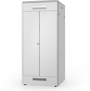 - Dach ist vorbereitet für die Aufnahme einer Lüftereinheit sowie einem aufgesetztem, abnehmbarem Deckel - Aufschiebbarer Kabeleinlass mit Moosgummidichtung im Boden - Verschluss-System mit Schwenkhebelgriff an Fronttür (vorbereitet zur Aufnahme von Profilhalbzylinder. Adapter liegt bei) - Geschlossene Stahl-Fronttür bietet Sichtschutz vor zu verbauenden Komponenten - Lieferung erfolgt komplett montiert