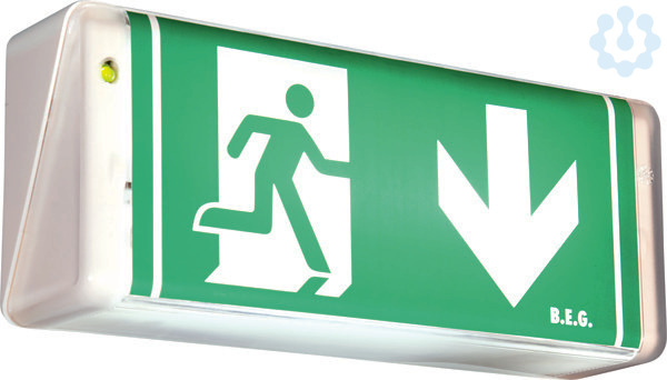 Not- und Hinweisleuchte Serie Classic Typ SAFETYLUX, Inklusive Leuchtstofflampen bzw. Glühlampen und 3 selbstklebenden Piktogrammen (links, rechts, unten), Wandmontage, mit separat erhältlichem Zubehör Wandausleger-, Deckenaufbau- und Pendelmontage, Dauer- und Bereitschaftsschaltung, Konventionelle Funktionskontrolle mit Prüftaster, Schutzkorb für Wand- oder Deckenmontage unter Art.-Nr.: 7888 erhältlich