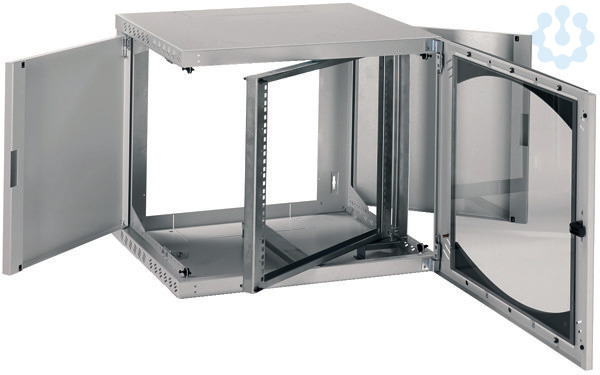 Dieses Actassi OPB ist ein wandmontiertes Gehäuse aus gefaltetem und geschweißtem Stahlblech, pulverlackiert, ledergenarbt, RAL 7035 lichtgraues Epoxid-Polyester. Das Gehäuse besteht aus einem Korpus, 2 schwenkbaren und abnehmbaren Seitenwänden, festen 19-Zoll-Schienen und einer transparenten Securit-Glastür mit Schlüssel Nr. 333. 333. Schutzart gegen Fremdkörper IP20 und Schlagfestigkeit IK08 für die Sichttür. Schwenkbares Rack, das eine maximale Last von 25kg gemäß IEC62208 aufnehmen kann. Die Abmessungen dieses Schranks sind 515 mm in der Höhe (oder 9HE), 600 mm in der Breite und 500 mm in der Tiefe. Produktfamilie Actassi.