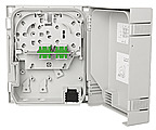 Glasfaser Spleiß-/Verteilgehäuse zum Einsatz als Hausübergabepunkt , bestückt mit SC-D Kupplungen , Aufnahmemöglichkeit für max. 12 Pigtails oder 2 VIKs, Deckelverriegelung mittels Rasthaken mit Möglichkeit zur Plombierung., Deckel kann zur Erleichterung der Montage sehr einfach demontiert werden, Spleißkassette zur einfachen Montage und Wartung bei größtmöglichem Schutz der Fasern mit Auskreuzungsmöglichkeit und Faserüberlängenablage, mit oder ohne Schloss erhältlich, Zugentlastung für Kabel und Patchkabel, Montagemöglichkeit und Fixierung für Gas-/Wasserblocker vorhanden, Patchkabelausgang mit flexibler Lamellendichtung, zwei Kabeleinführungen für M20/25, eine M20-Verschraubung beiliegend, Befestigungsmöglichkeit für optische Koppler, strukturiertes ASA (Acrylester-Styrol-Acrylnitril) in RAL 7035, extrem widerstandsfähiger Kunststoff, schlagzäh und witterungsbeständig, Schutzklasse nach IEC 60529: IP 54 , Varianten: bestückt mit bis zu 6 SC-D Kupplungen, jeweils blau (OS2) oder SC-D APC Kupplungen, jeweils
