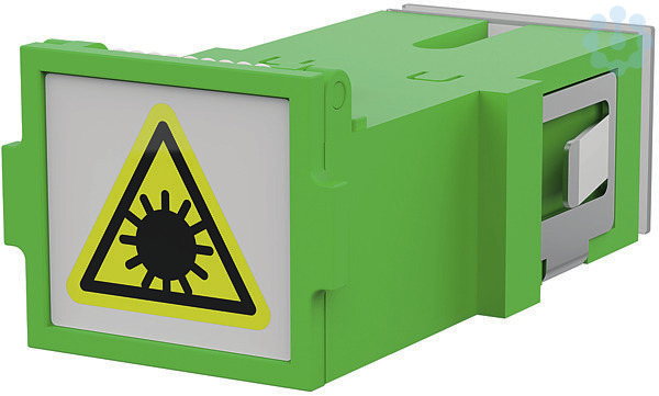 SC-Simplex-Kupplung aus Kunststoff, mit Metall-Clip, geschlitzte Führungshülse aus Keramik für Singlemode-Anwendungen, mit einer Laserschutzklappe und einer Staubschutzkappe, hohe Materialstabilität, Oberflächenqualität und Lebensdauer, Lebensdauer min. 1000 Steckzyklen, Varianten: blau (SM) oder grün (SM APC)