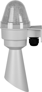 COBL 70, rot, 2 Funktionen 230 V AC, 2 Töne RAL 7035 Kleinhupe mit Trichter, klare Linse Art.-Nr.: COBLHP582GT230CL