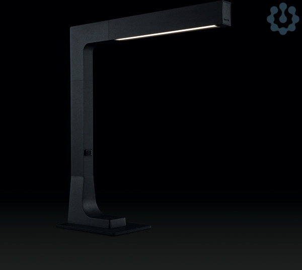 Tischleuchte direkt strahlend, Leuchtenkopf aus stranggepresstem Aluminium, längs mit präzisem 90° Druckgussteil zum Stativ montiert, schwarz (...-FSW, ähnlich RAL9005), pulverbeschichtet. Die eingebaute opale Scheibe sorgt für die Lichtlenkung des Direktlichtstroms. Leuchte mit Stativfuß aus Stahl, feinstrukturiert, schwarz, für optimale Stabilität. Netzanschlussleitung schwarz mit Schukostecker, Länge 3m. Im Stativ eingebauter Schalter zum Ein- und Ausschalten der Leuchte. Midpower LED-Module für maximale Leuchteneffizienz. Farbwiedergabeindex Ra > 80, Farbtemperatur 4000 Kelvin (-840). Schutzklasse II, Schutzart IP20. Sonderausführungen mit glatter glänzender Pulverbeschichtung nur in Kombination mit Nickel matt gebürstetem oder Chrom glänzendem Eckverbinder, Stirnteil und Fußübergangsteil möglich.