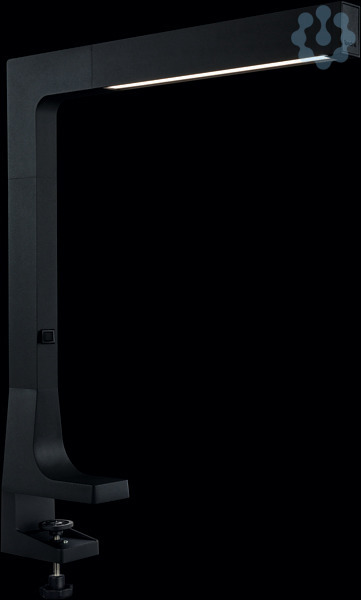 Tischleuchte direkt strahlend, Leuchtenkopf aus stranggepresstem Aluminium, längs mit präzisem 90° Druckgussteil zum Stativ montiert, schwarz (...-FSW, ähnlich RAL9005), pulverbeschichtet. Die eingebaute opale Scheibe sorgt für die Lichtlenkung des Direktlichtstroms. Befestigung am Tisch über Klemmfuß, Klemmweite von 15mm bis 40mm. Netzanschlussleitung schwarz mit Schukostecker, Länge 3m. Im Stativ eingebauter Schalter zum Ein- und Ausschalten der Leuchte. Midpower LED-Module für maximale Leuchteneffizienz. Farbwiedergabeindex Ra > 80, Farbtemperatur 4000 Kelvin (-840). Schutzklasse II, Schutzart IP20. Sonderausführungen mit glatter glänzender Pulverbeschichtung nur in Kombination mit Nickel matt gebürstetem oder Chrom glänzendem Eckverbinder, Stirnteil und Fußübergangsteil möglich.
