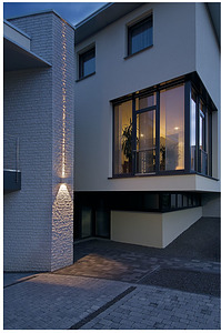 Die als einflammige und zweiflammige erhältliche LED-Wandleuchte der OUT-BEAM Serie wurde speziell für eine Architektur- und als Akzentbeleuchtung konzipiert. Die beiden gegenüberliegenden, mit Glas abgedeckten LED Lichtquellen geben jeweils einen engen, sowie einen breiten Beam ab und erzeugen somit den besonderen up/down Effekt. Durch die Schutzart IP44 ist die Leuchte für den Außenbereich geeignet. Der elektrische Anschluss der Leuchte erfolgt durch den verbauten LED Treiber direkt an 230V Netzspannung. Die OUT BEAM Serie beinhaltet des Weiteren Wandleuchten für Halogenlampen.