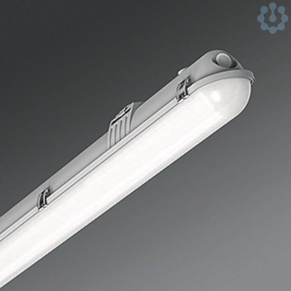 Gehäuse aus glasfaserverstärktem Polyester, mit alterungsbeständiger PUR-Schaum-Dichtung im umlaufenden Rand, Wannenclipse aus Edelstahl, Geräteträger aus weiß lackiertem Stahlblech. Gehäuse mit erhöhter Chemikalienbeständigkeit. Tiefgezogene Acrylglaswanne mit opaler, glatter Oberfläche, Treiber integriert. Elektrischer Anschluss über 5-polige Anschlussklemme in Steckkontakt-Technik, mit Notlicht Batterie 3h und integrierter Statusanzeige. Mit Selbsttestfunktion, Leuchtenstatus über sichtbare Status-LED in der Leuchte,