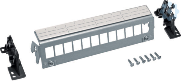 Patch-Panel,univers,12-fach,für Keystone,ohne Module,für Hutschiene/geschraubt. Patchpanel leer für Keystone zum Einbau in Multimediafelder auf DIN-Hutschienen, Tragschienen und Montageplatten bestehend aus Universalhalterung aus verzinktem Stahlblech mit Ausschnitte für Datenmodule, isolierter Kunststoffträger für Rastung auf Hutschiene, Verschraubung auf Montageplatten oder Tragschienen in Verteilerschränken und Bezeichnungsstreifen.