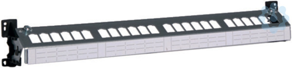 Patch-Panel 24-fach (E-Dat), ohne Module für Hutschiene oder geschraubt. Patchpanel leer zum Einbau in Multimediafelder auf DIN-Hutschienen, Tragschienen und Montageplatten bestehend aus Universalhalterung aus verzinktem Stahlblech mit Ausschnitte für Datenmodule, isolierter Kunststoffträger für Rastung auf Hutschiene, Verschraubung auf Montageplatten oder Tragschienen in Verteilerschränken und Bezeichnungsstreifen. Hinweis: Vom Patchpanel ist eine Leitung zur Potentialausgleichsschiene (Funktionspotentialausgleich nach DIN EN 50310, VDE 0800-2-310) miteinander zu verbinden (nicht enthalten).