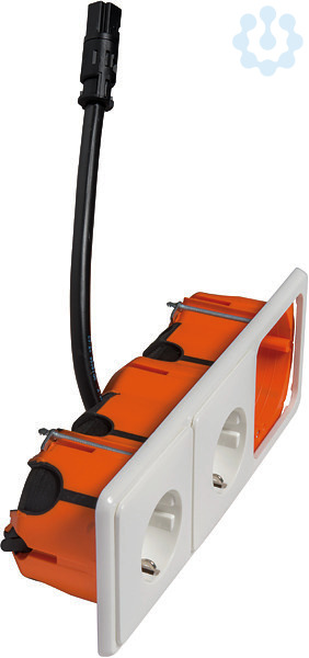 Bestehend aus: Kombi-Rahmen, 3fach, Doppel-Steckdose SCHUKO® 2-polig, 16 A 250 V, mit schwarzem Kodierstecker A, mit erhöhtem Be- rührungsschutz sowie einem leeren Steckplatz zur individuellen Nutzung, inkl. luftdichter Einbaudose, mit vorkonfektionierter Kabelpeitsche, Kabel länge 30 cm