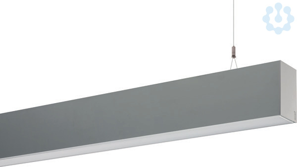 Rechteckige LED-Pendelleuchte direkt-indirekt strahlend, gemeinsam schaltbar. Sehr schmaler Leuchtenkörper aus stranggepresstem Aluminiumprofil, natureloxiert, Deckenanbaubaldachin aus verzinktem Stahlblech. Anschlussleitung transparent, 1,5m. Endstirnteile aus stranggepresstem Aluminiumprofil umschließen das Tragprofil zur Verhinderung von seitlichem Lichtaustritt. Direktanteil mit breit strahlender Lichtverteilung. Extrudierte Kunststoffabdeckung aus klarem, satiniertem, schlagzähem, UV-beständigem PMMA für die effiziente Abdeckung des Indirektanteils. Abdeckungen generell durchgehend, ohne Stoß. RIDI LED-Modul auf Geräteträger als Linearplatine ausgebildet. Mid-Power LEDs für gleichmäßige Ausleuchtung und maximale Effizienz montiert auf Grundprofil aus stranggepresstem massivem Aluminiumprofil für optimales Thermomanagement. Indirektanteil 300mm kürzer als Direktanteil, entsprechende Fläche durch Blindabdeckung abgedeckt. Schutzart IP20. Leuchtenabdeckung direkt über transparente Kunststoffabdeckung co-ext