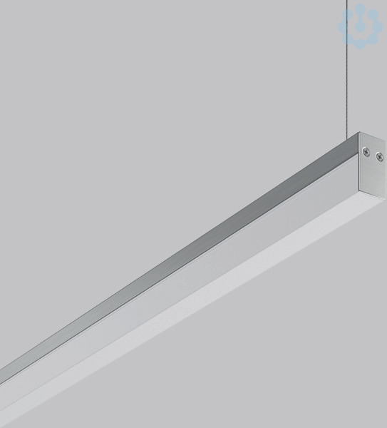 Minimalistische Pendelleuchte mit dreiseitiger Lichtabstrahlung. Gehäuse Aluminium-Strangpressprofil eloxiert oder pulverbeschichtet. Endkappen Aluminium eloxiert oder pulverbeschichtet. Diffusor aus vergilbungsfreiem Kunststoff (PMMA) opal. Geeignet für Pendel durch abgehängte Decke. 2-Punkt Stahlseilabhängung stufenlos höhenverstellbar oder gewünschte Sonderlängen auf Anfrage. Betriebsgerät extern mit Verbindungsleitung.