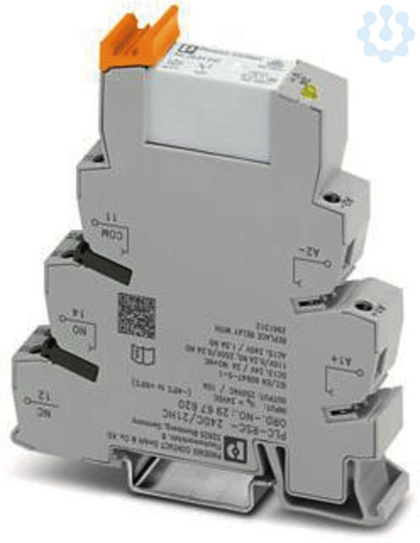 PLC-INTERFACE, bestehend aus Grundklemme PLC-BSC.../21 HC mit Schraubanschluss, und steckbaren Miniaturrelais für hohen Dauerstrom, zur Montage auf Tragschiene NS 35/7,5, Grenzdauerstrom bis 10 A, 1 Wechsler, Eingangsspannung 24 V DC