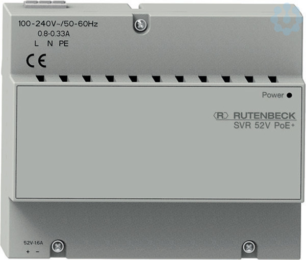 PoE-Spannungsversorgung für REG-Montage, Ausgangsleistung: 80 W, für bis zu 3 PoE+ Geräte (Klasse 0-3), 6 TE (1TE=18 mm), lichtgrau (ähnlich RAL 7035), - für DIN-Schienenbefestigung (6TE), - Schutzart IP 20 (DIN EN 60529), - integriertes Netzteil, 100-240 V/50-60 Hz, - automatischer Kurz- und Überlastschutz, - abziehbare Steckklemme bis 2,5 mm Durchmesser bei 230 V, - abziehbare Steckklemme bis 1,5 mm Durchmesser bei PoE, - Ausgangsspannung 52 V, - Ausgangsleistung 80 W, - für bis zu 3 PoE+ Geräte (Klasse 0-3), - Betriebstemperatur -20° C bis +45° C, - Lagertemperatur -40° C bis +85° C, - LED für Betriebsfunktionen, - 230 V: 3-poliger Klemmblock mit Steckklemmen, - PoE: 2-poliger Klemmblock mit Steckklemmen, - Leistungsaufnahme (Leerlauf): < 0,5 W