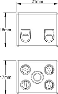 Anschlussklemme nach DIN EN 60998, mit Befestigungsbohrungen, mit Drahtschutz, halogenfrei. Die Anschlussklemme muß lagefixiert werden. Abmessungen (ca. Maße) H x B x L : 17,5 x 17 x 21 mm Klemmbereich eindrähtig, starr, flexibel : 1,0 - 6,0 mm² Anschlussmöglichkeiten eindrähtig, starr : 4 x 1,0 mm², 2 x 1,5 mm², 1 x 2,5 mm², 1 x 4,0 mm², 1 x 6,0 mm² Anschlussmöglichkeiten flexibel : 3 x 1,0 mm², 2 x 1,5 mm², 1 x 2,5 mm², 1 x 4,0 mm² Pole : 2 Werkstoff Isolierteil : Porzellan, glasiert Werkstoff Klemmbolzen : Messing Werkstoff Klemmschrauben : galvanisch verzinkter Stahl Max. Umgebungstemperatur : 200°C Nennspannung : 450 V Farbton : weiß
