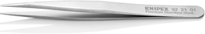 92 21 01 Präzisionspinzette Widerstandsfähig und präzise: Präzisionspinzetten aus Premium-Edelstahl bieten enorme Zähigkeit und gute Beständigkeit gegenüber den meisten Chemikalien, Salzen und Säuren. Durch ihr hochwertiges Material eignen sie sich für den Einsatz in chemischer, pharmazeutischer und Elektroindustrie, durch die präzise gearbeiteten Pinzettenspitzen sogar für feinste mikroskopische Arbeiten. Dauergebrauchstemperatur 350°. Kurzzeit-Temperatur Luft 925°. - Ausführung: Mattiert - Spitzenbreite (B): 0,9mm - Ausführung Pinzettenspitze: Spitz - Korrisionsbeständig: Ja - Branche Feinmechanik: Ja - Branche Medizin: Ja - Branche Wissenschaft: Ja - Branche Lebensmittel: Ja