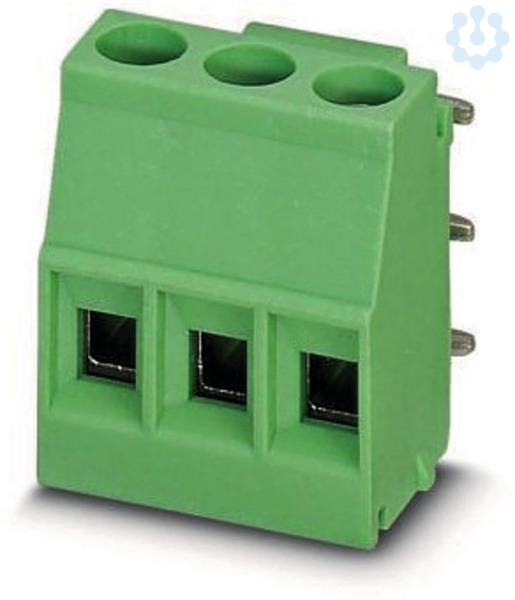 Leiterplattenklemme, Nennstrom: 24 A, Bemessungsspannung (III/2): 400 V, Nennquerschnitt: 2,5 mm², Anzahl der Reihen: 1, Polzahl pro Reihe: 3, Artikelfamilie: MKDSO 2,5/..-R, Rastermaß: 5 mm, Anschlussart: Schraubanschluss mit Zughülse, Montage: Wellenlöten, Anschlussrichtung Leiter/Platine: 0 °, Farbe: grün, Pin-Layout: Lineares Pinning, Pinlänge [P]: 3,5 mm. Artikel mit seitlichem Pinabgang rechts