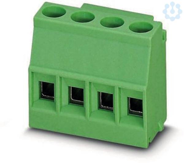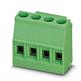 Leiterplattenklemme, Nennstrom: 24 A, Bemessungsspannung (III/2): 400 V, Nennquerschnitt: 2,5 mm², Anzahl der Reihen: 1, Polzahl pro Reihe: 4, Artikelfamilie: MKDSO 2,5/..-L, Rastermaß: 5 mm, Anschlussart: Schraubanschluss mit Zughülse, Montage: Wellenlöten, Anschlussrichtung Leiter/Platine: 0 °, Farbe: grün, Pin-Layout: Lineares Pinning, Pinlänge [P]: 3,5 mm. Artikel mit seitlichem Pinabgang