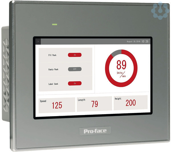 Das Basic Web-Panel STW6000 ist ein Webbrowser-basiertes Standard Touch-Panel aus der Pro-face ST6000-Reihe. Diese Produkt-Reihe wurde entwickelt, um die Anforderungen an die Bedienerschnittstelle einfacher Maschinen zu erfüllen. Hierbei stehen ein schnelles und einfaches Setup und der flexible und vielfältige Einsatz im Mittelpunkt. Das resistive Single-Touch Display in 4,3 Zoll wide screen mit 16 Mio Farben und einer Auflösung von 480x272 Pixel dient der Visualisierung, Bedienung und Statusanzeige ihrer Anwendungen. Das Web Panel dient der Anzeige von Web Servern und Webvisualisierungen. Die Bedienoberfläche auf dem HMI basiert auf der CoDeSys Webvisualisierung. Durch die vielfältigen Schnittstellen (1 x Ethernet, 1 x USB Typ A) ist eine optimale Konnektivität gewährleistet. Die äußeren Abmessungen des Displays betragen 134,5 mm (Breite) x 108,5 mm (Höhe) x 43 mm (Tiefe) bei einem Panel Cut-out von 118,5 mm x 92,5 mm und einer Tafeldicke von 1,6 bis 5 mm, mit Federklemmen 1,5 bis 4 mm oder 4 bis 6mm. Das Pr