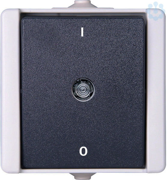 Aufputz-Feuchtraum Ausschalter 2-polig im Design proAQA und der Farbe grau mit einer Nennspannung von 250V~ sowei einem Schaltvermögen von 10AX. Schutzart IP 44