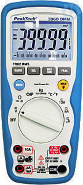 Professionelles Multimeter, das neue Maßstäbe setzt und den Standard für eine Kombination an Präzision, Funktion, Bedienerfreundlichkeit, Sicherheit und Verlässlichkeit bietet. Dieses Modell verfügt über eine True RMS-Messung für Wechselspannung und Wechselstrom, Maximal-/Minimalwert-Speicherung (MAX-MIN) sowie Spitzenwerterfassung und über eine hohe Auflösung mit einer maximalen Anzeige von 40.000.-4 3/4-stellige, 20 mm LCD-Anzeige mit Hintergrundbeleuchtung und 42-Segment Balkengrafik. max. Anzeige: 40000-IP67 staub- und wasserdicht-Echt-Effektivwertmessung-Relativwertmessfunktion-Durchgangsprüfung und Diodentest-Minimal-, Maximal- und Messwerthaltefunktion-Automatische und manuelle Bereichswahl-Sicherheit: TÜV/GS, EN 61010-1. CAT III 1000 V / CAT IV 600 V