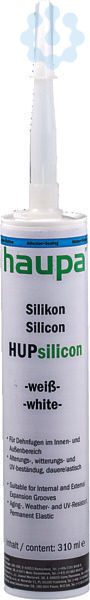 Silikon HUPsilicon weißAnwendung HUPsilicon: Für Dehnfugen im Innen- und Außenbereich, Fensterverglasung und Abdichtung von Anschlussfugen bei Holz-, Kunststoff-, Aluminiumfenstern. Entspricht DIN 18545 Teil 2. Sehr gute Haftung auf den meisten marktüblichen Lasuren und Lacken. Eigenschaften: Dauerelastisch. Alterungs-, witterungs-, UV-beständig. Anstrichverträglich. Geruchsneutral. Keine Frührissbildung. Gute Haftung auf Arbeitsplatten. Keine Oberflächenklebrigkeit. Temperaturbeständigkeit -50°C bis +150°C. Verarbeitungstemperatur +5°C bis +40°C. Hautbildungszeit ca. 10-15 Min. (bei 23°C).? Für Dehnfugen im Innen- und Außenbereich ? Entspricht DIN 18545 Teil 2 ? Alterungs-, witterungs- und UV-beständig, dauerelastisch
