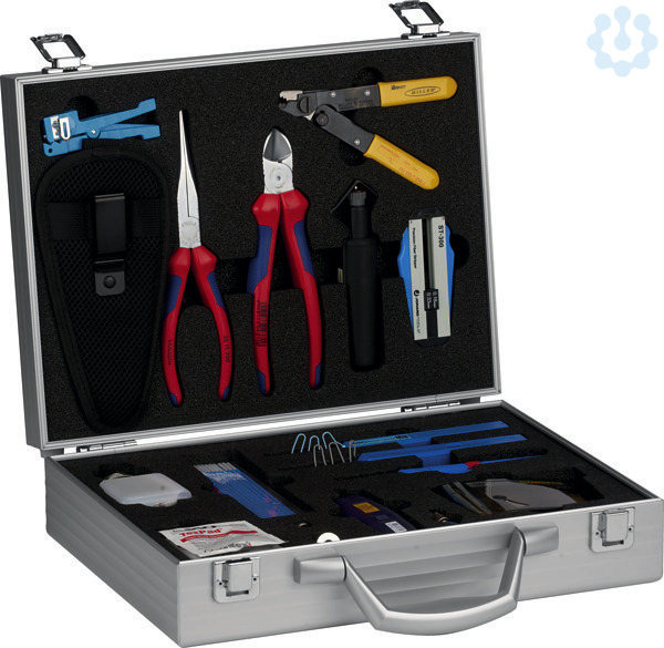 Der robuste Werkzeugkoffer aus Aluminium enthält alles was bei der Verarbeitung von Lichtwellenleitern notwendig ist. Egal ob Reinigung, Vorbereitung der Kabel und Fasern oder Prüfen - das geeignete Werkzeug steht in professioneller Qualität zur Verfügung.Lieferumfang / Inhalt:1 x Aluminium Koffer mit Aufnahmen für LWL-Werkzeug, (B x H x T) ca. 345 x 100 x 260 mm (Art.-Nr. 39840.1)1 x Fiber Checker Single- und Multimode für 1.25mm und 2.5 mm Ferrulen (Art.-Nr. 399900.2),Stromversorgung 2xAAA, Batterien nicht im Lieferumfang1 x QUICKLOADER Mini 6 in 1 Multi-Bit Schraubendreher (Art.-Nr. 39935.4)1 x Seitenschneider verchromt Knipex 7005 180 (Art.-Nr. 39982.2)1 x Spitzzange Knipex 3815 200 (Art.-Nr. 39984.1)1 x Abmantelwerkzeug Miller® RCS-114 für Rundkabel 4.5 - 29 mm längs-quer-spiral Schnitt (Art.-Nr. 39900.1)1 x Kevlar®-Schere KS-1 140 mm (Art.-Nr. 39903.1)1 x Bündeladerwerkzeug blau 3.2 - 6.3 mm (Art.-Nr. 39958.1)1 x Absetzwerkzeug 180 µm - 300 µm, zum Absetzen des Primärcoatings (Art.-Nr. 39923.1)1 x Mille