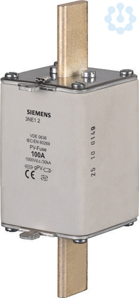 PV-Sicherungseinsatz, mit Messerkontakten, NH1, In: 63 A, gPV, Un DC: 1000 V, Stirnkennmelder Halbleiterschutzsicherungen SITOR 3NE, 3NC schützen Leistungshalbleiter vor den Auswirkungen eines Kurzschlusses. Das SITOR-Sicherungssystem von Siemens als wichtiger Bestandteil der SENTRON Schutzkomponenten für die Elektroinstallation bietet effektiven Personen-, Geräte- und Anlagenschutz durch sicheres Abschalten im Überlast- und Kurzschlussfall. Der Einsatzbereich umfasst zusätzlich Frequenzumrichter mit Sicherungen im Eingangs- und im DC-Zwischenkreis sowie auch USV-Anlagen und Sanftstarter für Motoren. Die Siemens SITOR-Sicherungen zeichnen sich vor allem aus durch: 1. Superflinke Abschaltcharakteristik im Vergleich zu herkömmlichen NH-Sicherungen. 2. Auch Leistungshalbleiter werden bei Kurzschluss sicher geschützt. 3. Der Siemens Qualitätsstandard sichert eine sehr gute Kennlinientreue. 4. SITOR-Zylindersicherungen sind nach IEC und UL und größtenteils auch CCC zugelassen und damit weltweit einsetzbar. 5. Teil