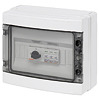 PV- Generatoranschlussgehaeuse nach EN61439-1 und EN61439-2 komplett bestueckt und verdrahtet. Mit Lastrennschalter 2 polig, Ueberspannungsableiter mit austauschbaren Schutzmodulen und Klemmen 6 qmm. Gehaeuse mit transparenter Tuer. Die Tuer kann durch ein Sicherheitsschloss (Zubehoer)gesichert werden. Abmessungen (BxHxT) 298x260x140 mm. Verschraubungen sind lose beigelegt.