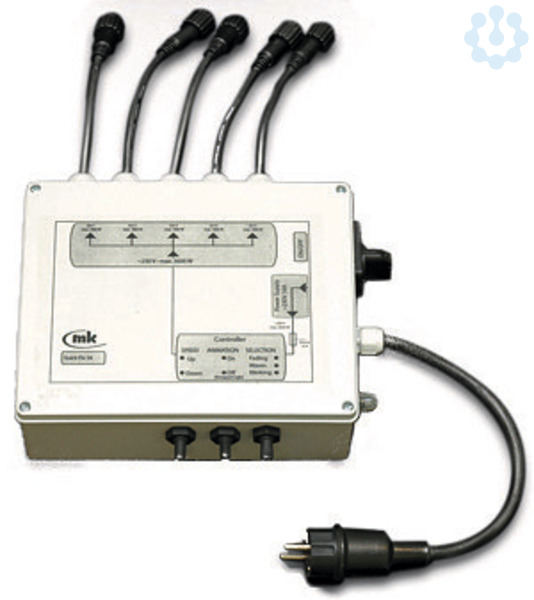 Quick Fix Verteiler, 5A, 230V, 16A, 5 Ausgänge - Verteilerdose zum Anschließen von Quick Fix Produkten, IP44, Steuergerät und Überlastsicherung eingebaut. Die Summe aller Ausgänge darf 3600W nicht überschreiten. Max. Belastbarkeit pro Ausgang: 1800W, Zuleitung: Schutzkontaktstecker (IP44, 3x2,5mm² mit Sicherung) - Animationseffekte: blinken: alle Ausgänge gleichzeitig, Geschwindigkeit in Stufen regelbar, dimmen: alle Ausgänge gleichzeitig, Geschwindigkeit in Stufen regelbar, Wellen: Ausgänge hintereinander, Geschwindigkeit in Stufen regelbar, Dauerlicht Energieeffizienzklasse: nicht kennzeichnungspflichtig