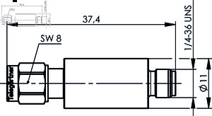 Ausführung: m-f Max. Frequenz: 6 GHz Max. Leistung: 2 W Rückflussdämpfung: 1 GHz - 39 dB. 4 GHz: -31 dB. 10 GHz: -22 dB Dämpfung: 3 dB