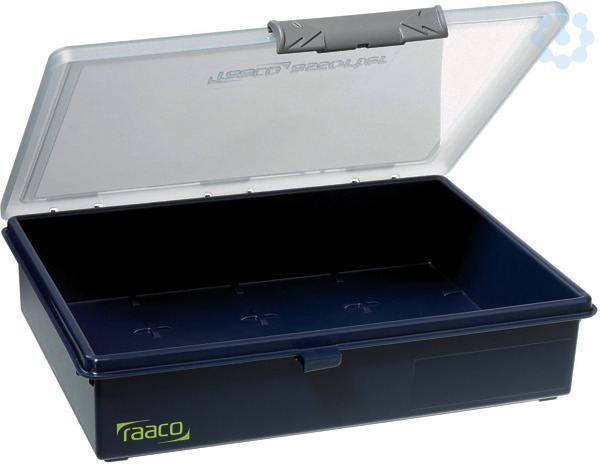 Sortimentskästen PSC preiswerte Transport- und Aufbewahrungskoffer für Kleinteile, mit fester, variabler oder ohne Inneneinteilung, aus widerstandsfähigem Polypropylen, stabile Schiebeverschlüsse mit Rastung, Kofferdeckel Deckel mit U-Profilen für verrutschsichere Aufbewahrung von Lagergut und loser Einsatzfach, stapelbar, auch hochkant aufzustellen, Farbe anthrazit - blau transparent, PSC vario Sortimentskästen mit variabler Inneneinteilung durch Einsatz von Einsätzen der Carry-Lite 55-Serie (Rastereinteilung 8 längs x 4 breit). Mit ergonomischem Tragegriff (nicht PSC vario-240), Typ vario-340, 0, 59kg, 340x260x57mm.