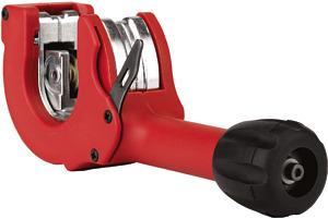 Ratschen-Rohrschneider Neuartiger, weltweit patentierter Rohrschneider mit Ratschenmechanismus, durch den das vollständige Drehenum das zu schneidende Rohr nicht mehr erforderlich ist. Besonders bei Arbeiten mit beengten Platzverhältnissen(z. B. in Ecken, an der Wand montierte Rohre) geeignet. Einhandbedienung. Besonders leistungsfähig Dankspeziellem Schneidrad und doppelter Rollenführung (Schnelligkeit, Langlebigkeit). Integrierter Entgrater fürsaubere Kanten bei geschnittenen Rohren. Leicht auswechselbares Schneidrad. Ein Ersatz-Schneidrad ist imLieferumfang enthalten.