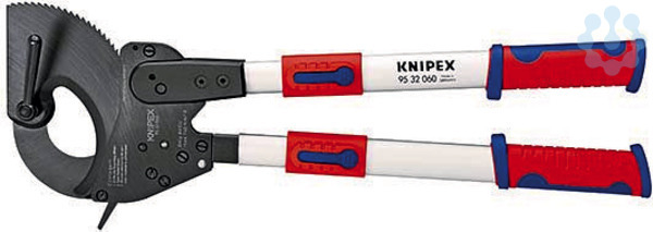 95 32 060 Kabelschneider Für Cu- und Al-Kabel, ein- und mehrdrähtig ? auch mit hartem Gummi- oder Kunststoffmantel. Nicht für Stahldraht, Drahtseile und feinstdrähtige (hochflexible) Leiter geeignet. Auch für Kabel mit Bandeisenbewehrung geeignet. Kraftsparendes Schneiden durch optimale Übersetzungsverhältnisse. Hohe Schneidleistung durch Zweihandbedienung und Ratschenprinzip. Öffnen des Werkzeuges in jeder Schneidposition möglich. Schenkellänge mehrstufig verstellbar von 400 bis 610 mm (kurze Transportlänge, individuelle Anpassung an Arbeitsbedingungen). Werkzeuglänge: 600 bis 810 mm. Gewicht nur ca. 3820 g. - Schneidwert Cu-Kabel, mehrdrähtig: 740mm² - Schneidwert Cu-Kabel, mehrdrähtig: Ø 60mm - MCM: 1.400