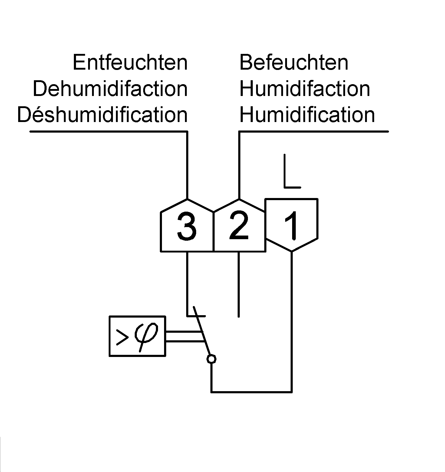 Der Raumhygrostat dient zur Überwachung und Regelung der relativen Feuchte, z.B. in Geschäftsräumen, Wohnungen, Wintergärten, Bädern, Schwimmbädern, EDV-Räumen und anderen Räumen mit sauberer, nichtaggressiver Umgebung entwickelt. Durch die Einwirkung der relativen Feuchte auf ein Messband wird ein potentialfreier Umschaltkontakt betätigt. Wegen der Inneneinstellung des Sollwerts besonders für Behörden, Schulen und ähnlich öffentliche Gebäude geeignet.