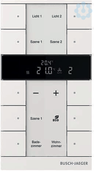 Frei konfigurierbares Multifunktionsbedienelement. Raumtemperaturbedienelement/Reglernebenstelle mit max. 10-fach Bedienelement Mit Beschriftungsfeld. Transparenter Beschriftungsbogen mit Standardsymbolen in der Lieferung enthalten. Unterstützung der KNX-Funktionen durch innovatives Farbkonzept (gelb=Beleuchtung, blau=Jalousie, orange=RTR, magenta=Szene und weiß=neutral/keine Funktionszuordnung) oder Standardbeleuchtung rot/grün. Tasterfunktion (Schalten/Dimmen/Jalousie/Wert senden/Lichtszenen/Lüftungsfunktion) Mit integriertem Temperaturfühler. Mit Temperaturanzeige IST-Wert Mit Temperaturanzeige SOLL-Wert. Der Busanschluss erfolgt über die beiliegende Busklemme. Mit integriertem KNX-Busankoppler. Anzahl Busteilnehmer: 1 Bei Bedarf entnehmen Sie bitte Software und Beschreibung dem aktuellen Online-Katalog. Ab ETS4: Inbetriebnahme über native ETS-Applikation