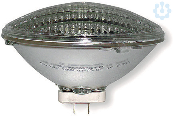 Halogen-Reflektorlampe PAR56, mit GX16d Sockel. Scharf begrenzter Lichtkegel, Farbfolienschonend, gleichmäßige Wärmeabgabe durch Frontglas, für professionelle Effektbeleuchtung in Diskotheken und auf Bühnen. Energieeffizienzklasse: E, Gewichteter Verbrauch (kWh/1000h): 294, Lebensdauer (h): 2000