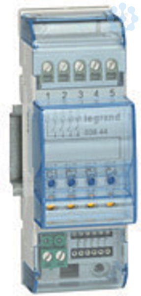 Reiheneinbauaktor mit 4 Schließern, wahlweise konfigurierbar als x-fach Schalt- oder x-fach Rollladenaktor, Kontaktbelastbarkeit 6?A ohmsch, 500?W Motorantrieb, 2?A induktiv, 150?W Leuchtstofflampen, 2 Testtasten sowie 2 Kontroll-LEDs, 2 TE DIN