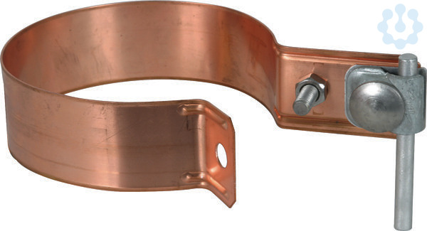 Rohrschelle nach DIN EN 62561-1, zum Anschluss von Regenfallrohren an den Blitzschutz-Potentialausgleich nach DIN EN 62305-3 (VDE 0185-305-3). Anschlussmöglichkeiten D11 mm für Rundleiter z. B. mit KS-Verbinder oder mit Klemmbock. Ausführung Zweimetall, für die Verbindung von Leitungen aus St mit Regenfallrohren aus Cu, mit Klemmbock St/tZn und Zwischenplatte (Cupal), für feste Rohrdurchmesser mit Schraube M8.