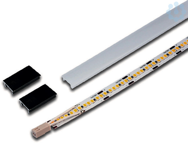 Reihbare Flächenlicht Leiste, Lichtfarbe neutral weiß ca.4000K, Durchgangsleitung mit LED 24-Stecker + LED 24-Buchse, optionales Zubehör: Diverse Ein und Anbau-Profile und kombinierbar mit verschiedenen Leuchtenarten, Dimm-Controller mit Funkfernbedienung, 1-10V, DALI, ZigBee, Sonar oder WiFi Steuerung