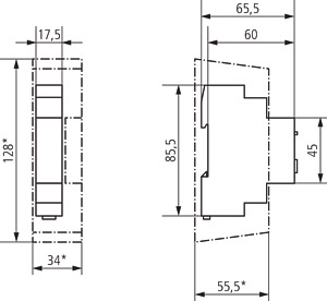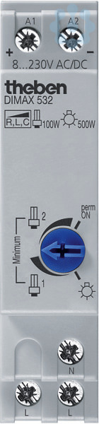Reiheneinbau-Universaldimmer für R, L und C-Lasten mit automatischer Lasterkennung, 2 optimierte Einstellungen für dimmbare Energiesparlampen unterschiedlicher Hersteller inklusive einstellbarer Mindesthelligkeit, einstellbare Einschalthelligkeit, Dimm-Einschaltfunktion für langsames Aufdimmen bei langem Tastendruck, automatische elektronische Überlast-und Übertemperatur-Abschaltung, Tastereingang galvanisch getrennt für Sprechanlagen AC/DC 8...230 V, Permanent AN Funktion für Installationstest, Dimmer voreingestellt für sofortige Inbetriebnahme