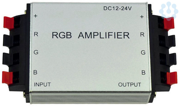 Der RGB-Verstärker ist zu empfehlen, wenn man mehrere RGB LED Lichtbänder gemeinsam mit einem zentralen Controller steuern möchte. Er verstärkt das Steuersignal, was die Lichteffekte und Farbwechsel verbessert. Trotz der zentralen Steuerung, die durch eine Fernbedienung gesteuert wird, weisen wir darauf hin, dass um den RGB Verstärker zu verwenden, soll er an einen Stromkreis angeschlossen werden, der über 12V Gleichstrom betrieben wird. Der Stromverbrauch hängt von dem LED Lichtband ab, der mit dem Controller und dem Verstärker angeschlossen werden soll.