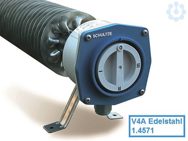Rippenrohrheizofen mit Schalter in V4A Edelstahl für besonders aggressive Umgebung. Alle Metallteile aus V4A Edelstahl, Schweißnähte gebeizt. 1000 W 230 V, mit eingebauten 3-Stufen-Schalter. Die Heizleistung kann dem jeweiligen Bedarf angepasst werden, das spart Energie. Stufen: Aus, 1/3 Heizleistung, 2/3 Heizleistung, volle Heizleistung. Staub- und Wasserdicht Schutzart IP66 / IP67. Schlagfestes Anschlussgehäuse aus glasfaserverstärktem Polyamid, inkl. Schnell-Montage-Füße für Wand- oder Bodenmontage und Kabelverschraubung M20.